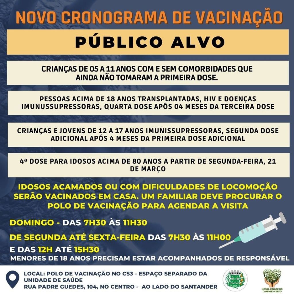 Idosos com mais de 80 anos podem tomar a quarta dose do imunizante. Aqueles acamados ou com dificuldades de locomoção serão vacinados em casa. Um familiar pode procurar o Polo de Vacinação para fazer i agendamento. Quanto mais protegido, melhor.